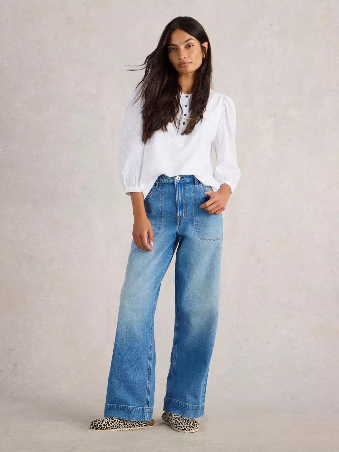 🔹 Džíny Aylin Wide (White Stuff) – vysoký pas a splývavé nohavice pro delší siluetu. Ve více barevných variantách.