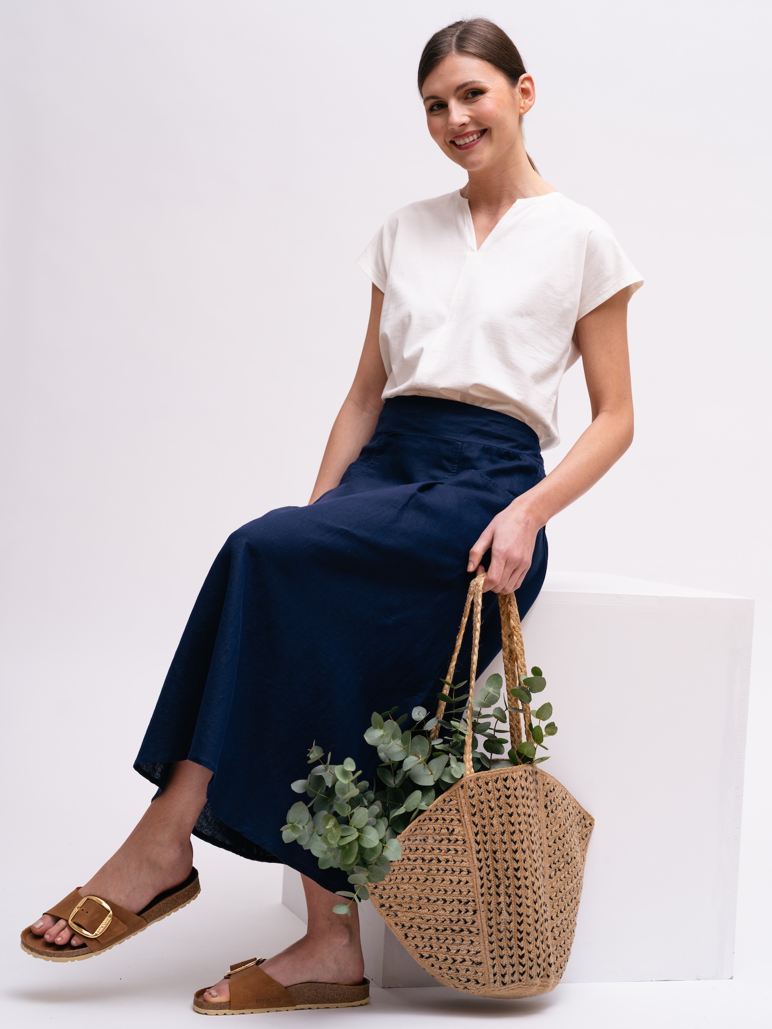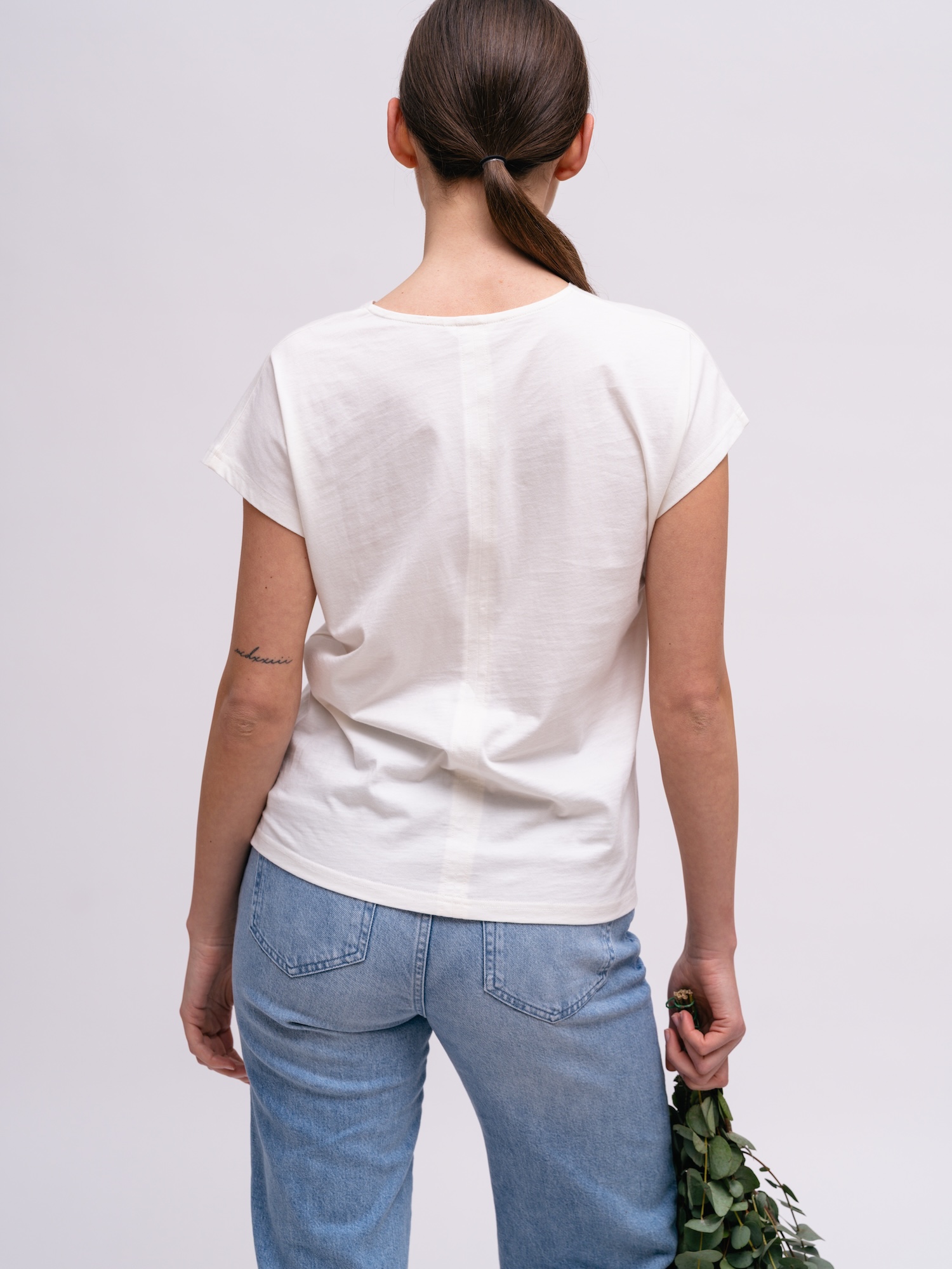 Bílý top s čistými liniemi je základním kouskem šatníku. Díky univerzálnímu střihu vytvoří elegantní i ležérní kombinace.