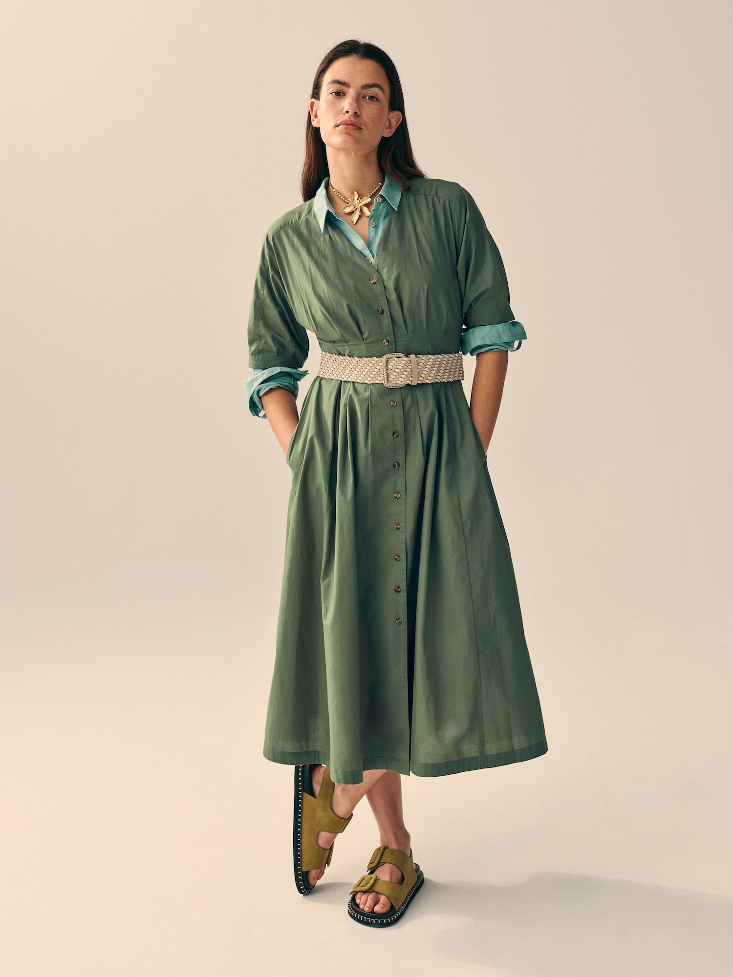 Model/ka měří 175 cm a nosí velikost M