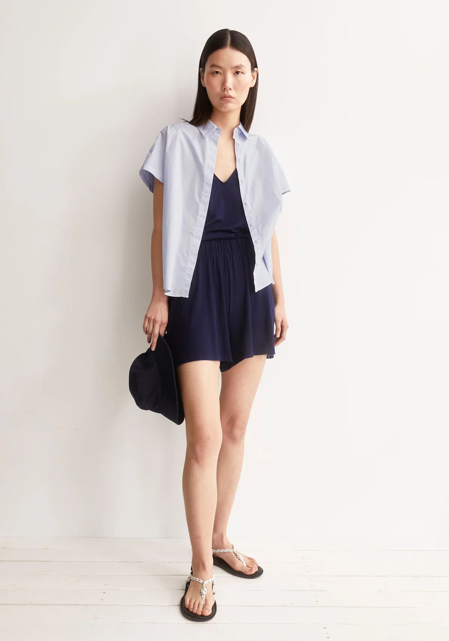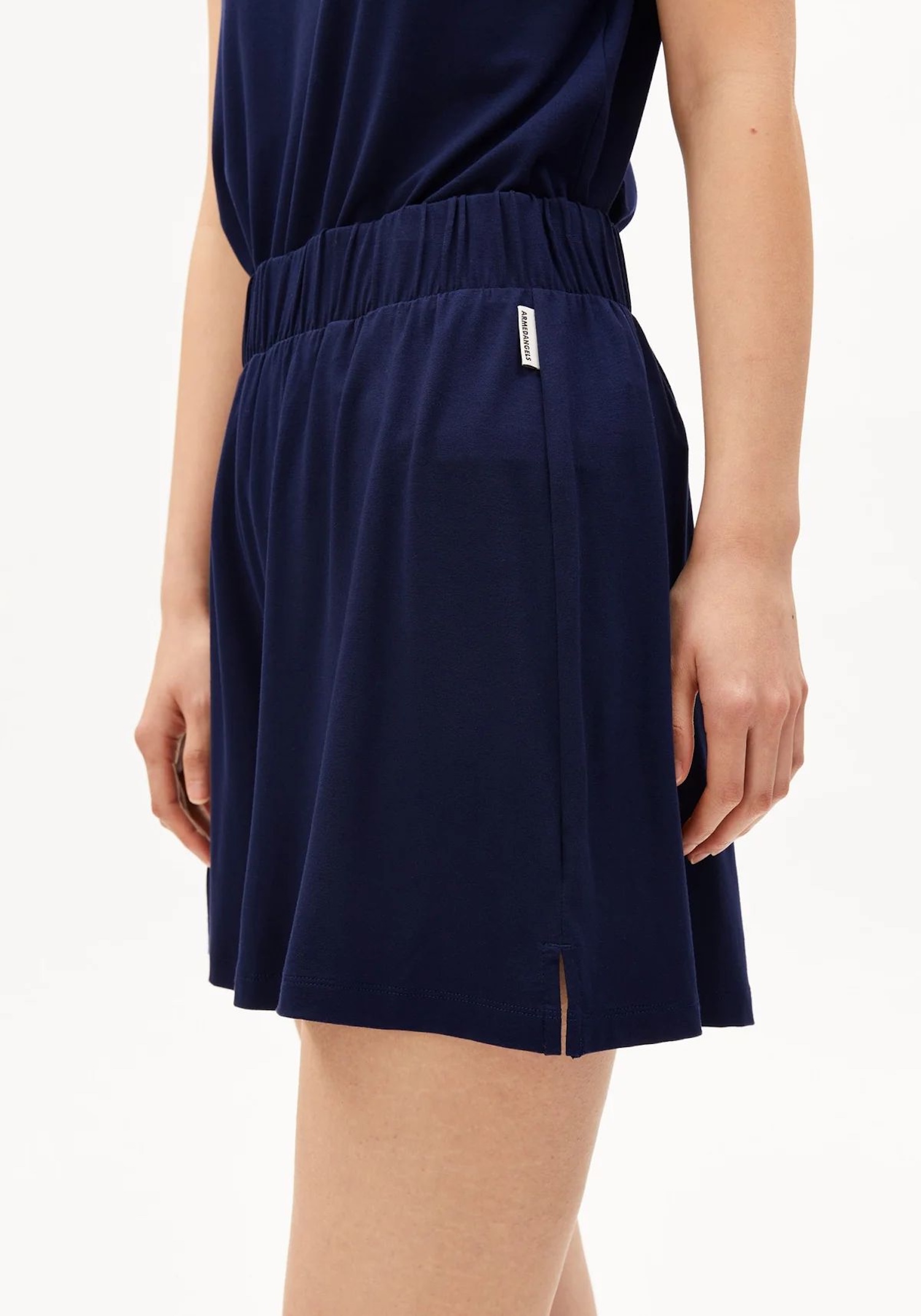 Splývavé námořnicky modré šortky z lehké tkaniny jsou praktické pro volný čas i dovolenou. Široký elastický pas usnadňuje oblékání a drží šortky pohodlně na místě.