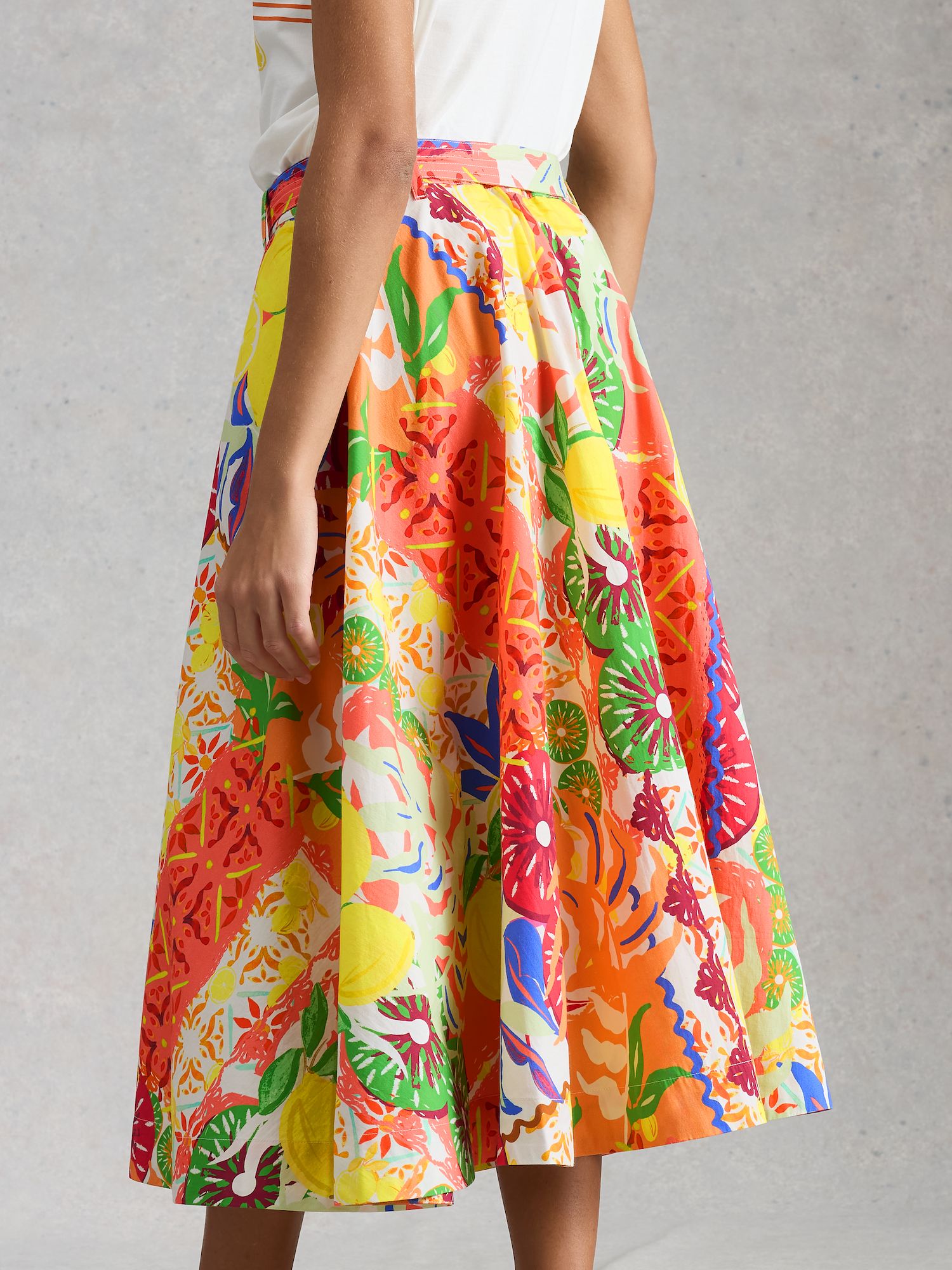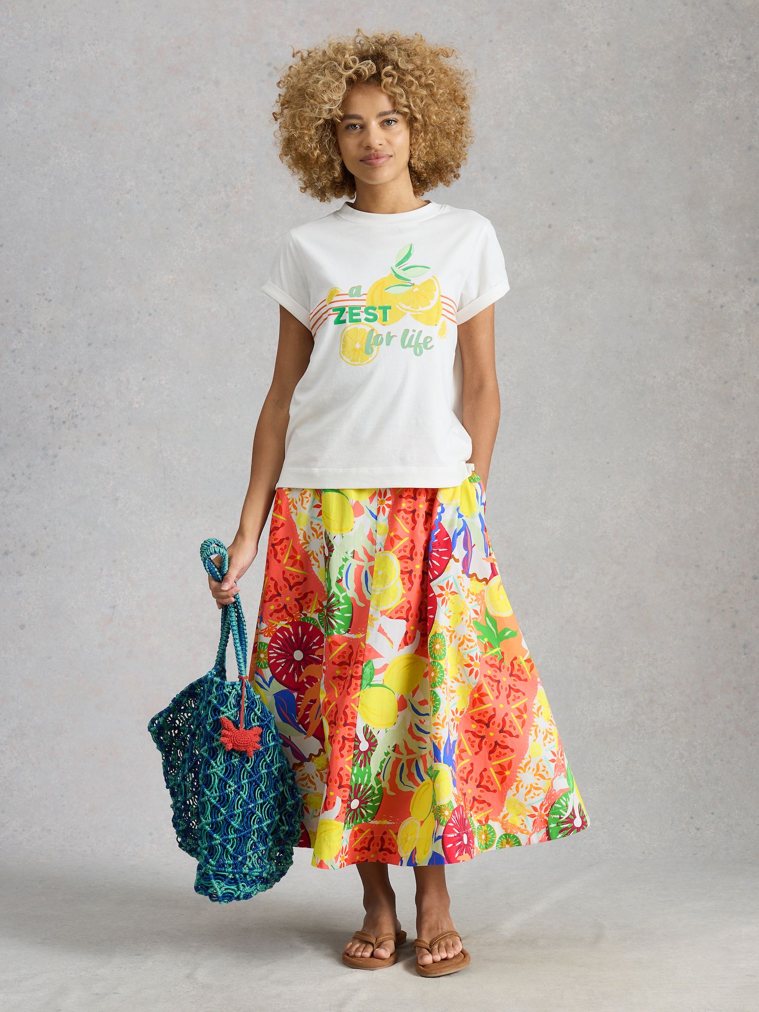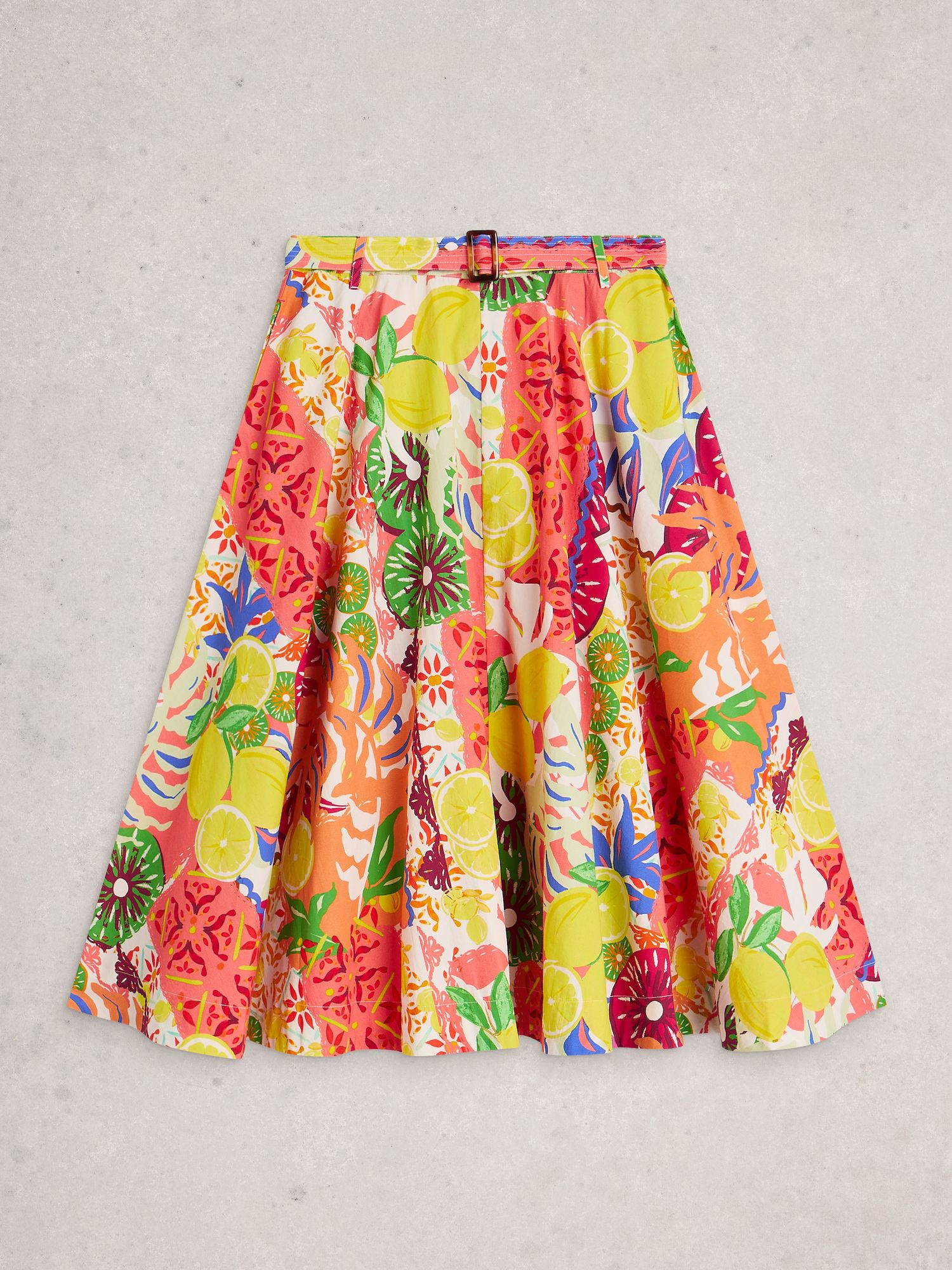 Áčková sukně se žlutým potiskem rozsvítí letní dny a přidá hravý prvek do šatníku. Zip a pásek pomohou přesně vytvarovat pas pro lichotivou siluetu.
