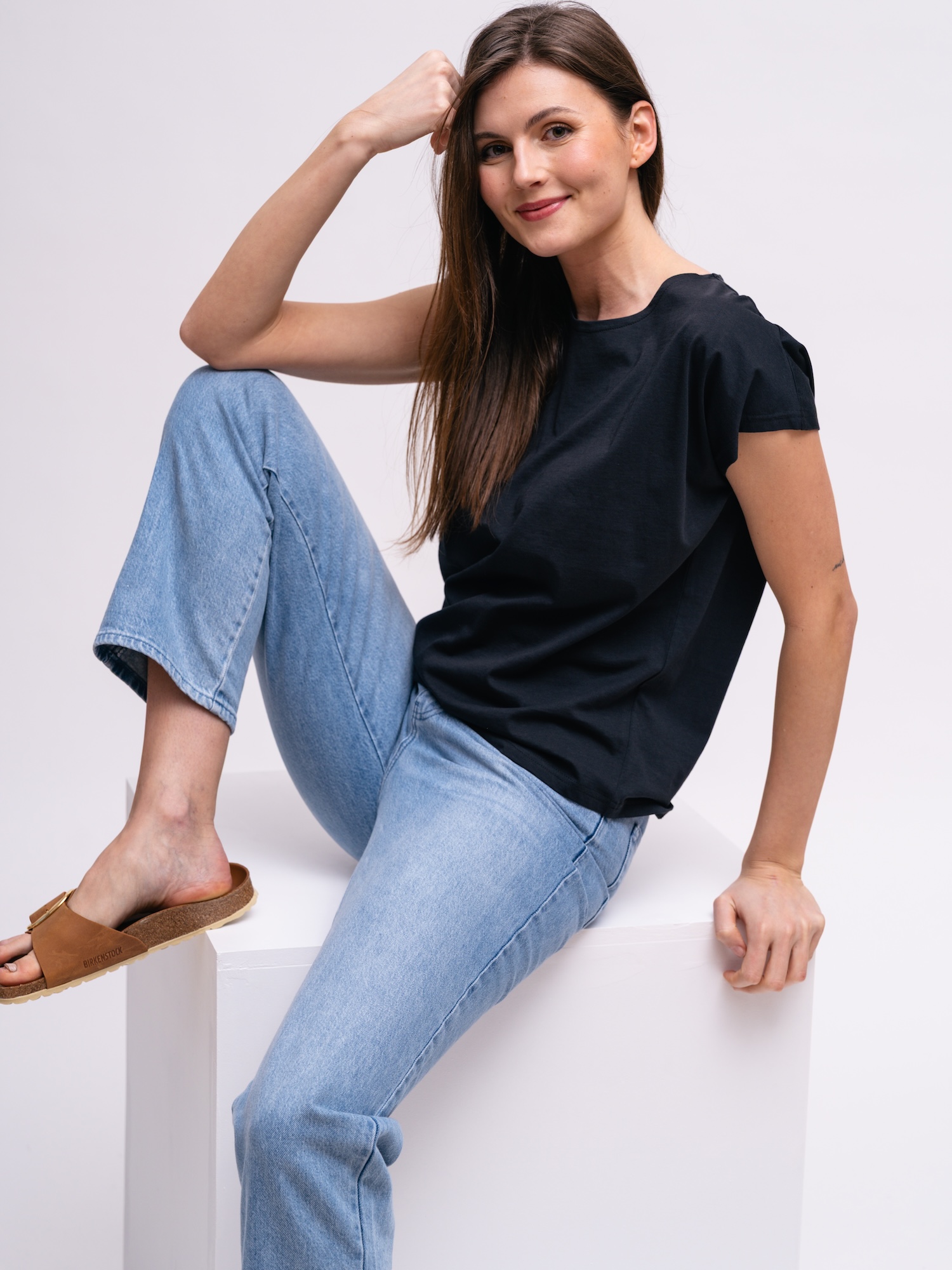 Pro dny, kdy chcete minimalistický, ale elegantní vzhled, je černý top skvělou volbou. Kombinujte ho se sakem nebo s džíny a vytvořte snadný denní i večerní styling.